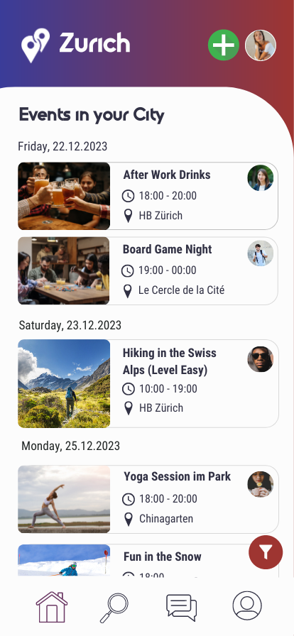 Events on City Mates are community-driven, meaning any user can create events, from after-work drinks to yoga sessions. Every event is reviewed before publication to maintain the quality and safety of experiences offered on the platform.